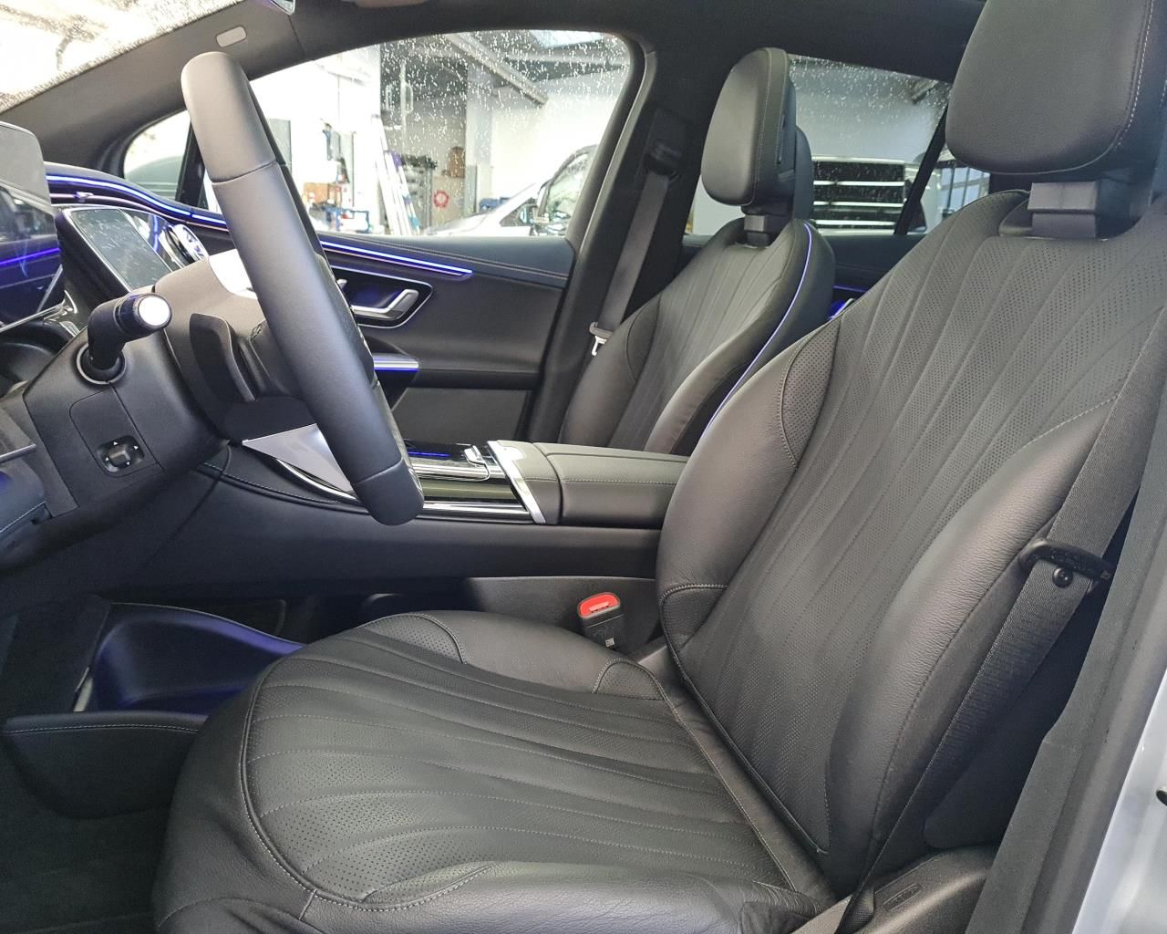 - Prahové lišty, vpředu podsvícené s nápisem "Mercedes-Benz"