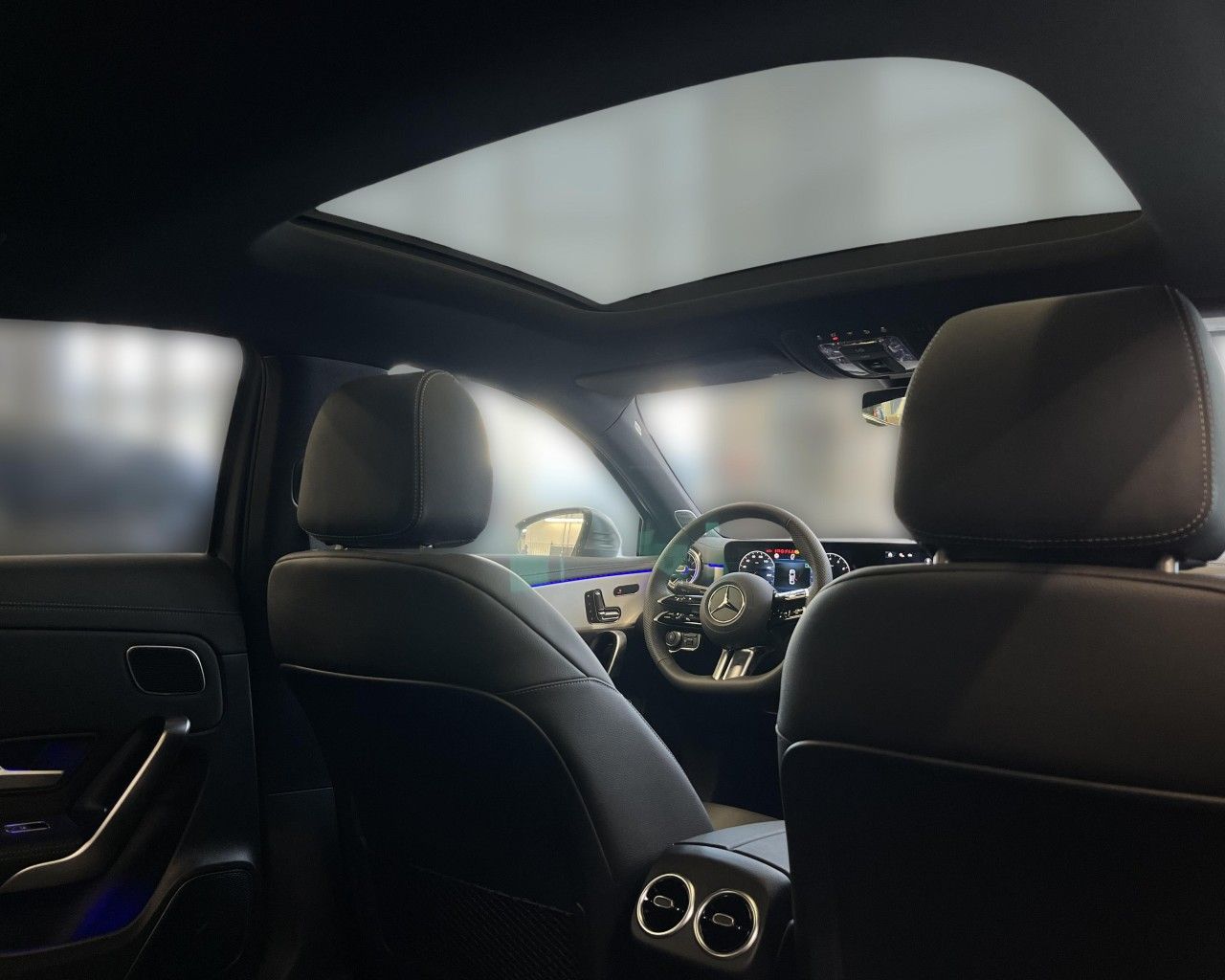 - Projekce loga Mercedes-Benz ze zpětných zrcátek
