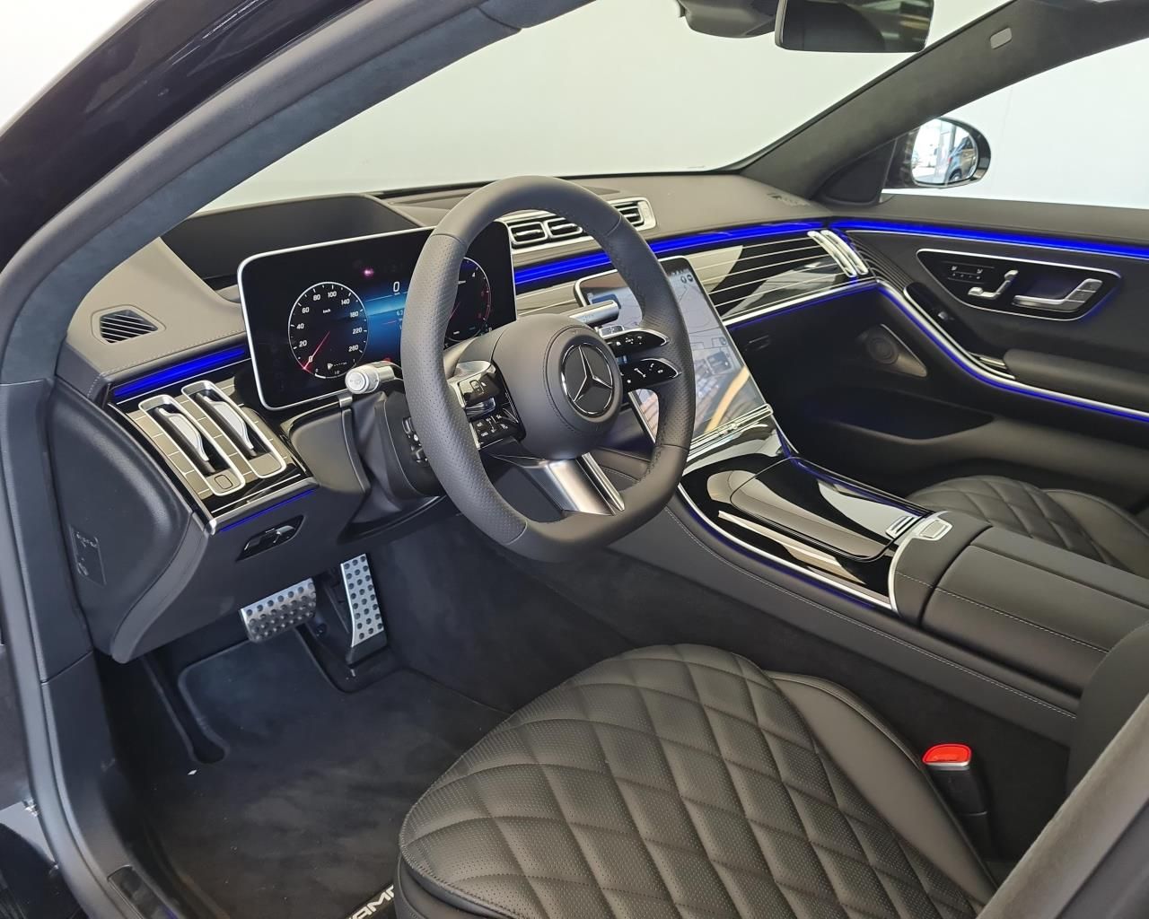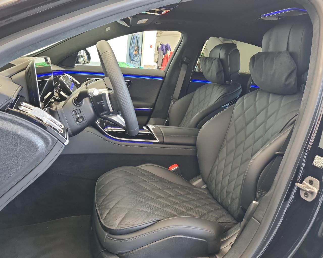 - Prahové lišty, vpředu podsvícené s nápisem "Mercedes-Benz"