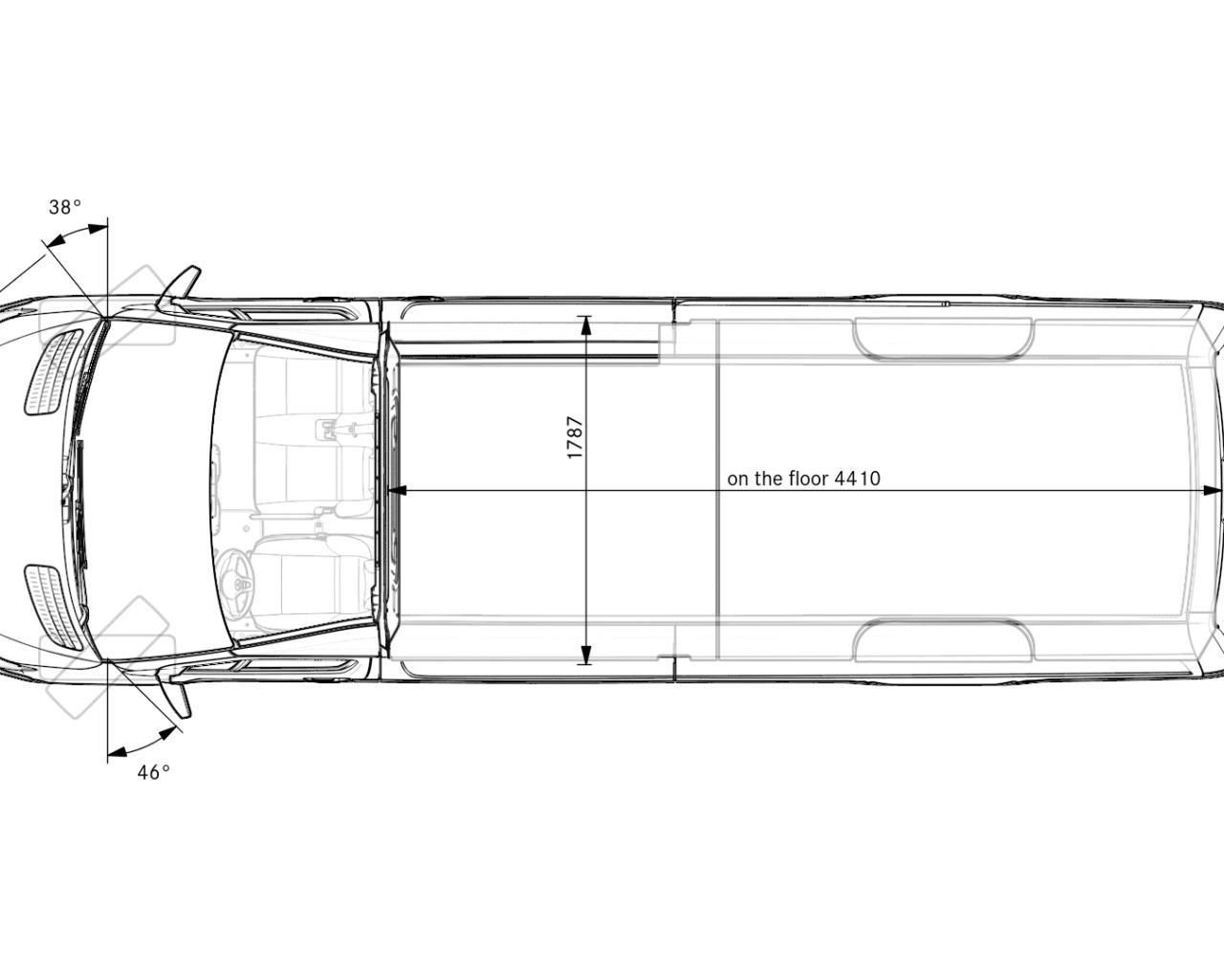- Rozvor 4325 mm, převis 1615 mm