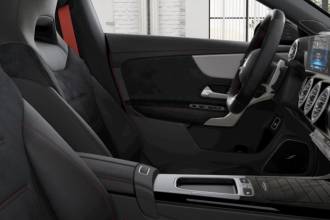 - Podsvícené prahové lišty dveří s nápisem "AMG" a výměnným krytem