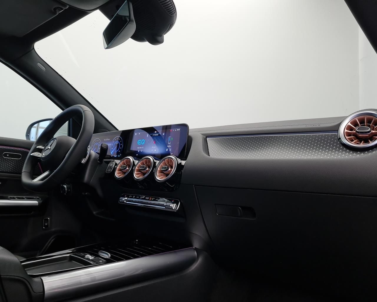 - Podsvícené prahové lišty dveří s nápisem "EQ" a výměnným krytem