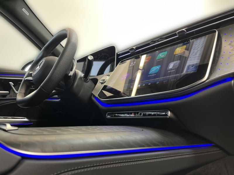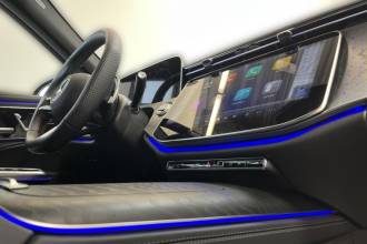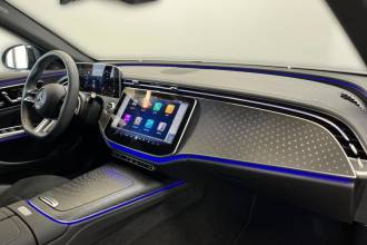 - Ozdobné výplně interiéru - černé dřevo jasanu s otevřenými póry a podsvíceným vzorem Mercedes-Benz